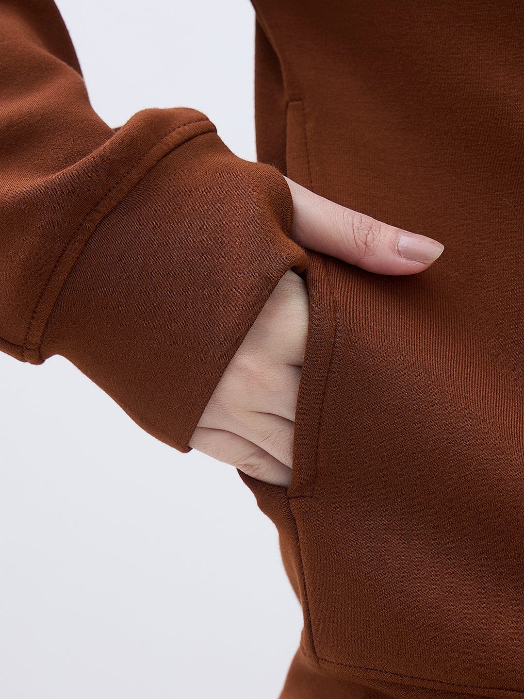 Stay cozy and stylish with the ELLE Women Brown Logo Hooded Regular Fit Sweatshirt. Crafted for comfort and versatility, this sweatshirt features a trendy hood and a flattering regular fit design. The iconic ELLE logo adds a touch of sophistication to your everyday wardrobe. Whether you are running errands or lounging at home, this sweatshirt is the perfect choice for effortless chic style. Upgrade your casual look with this must-have piece that combines fashion and comfort effortlessly.