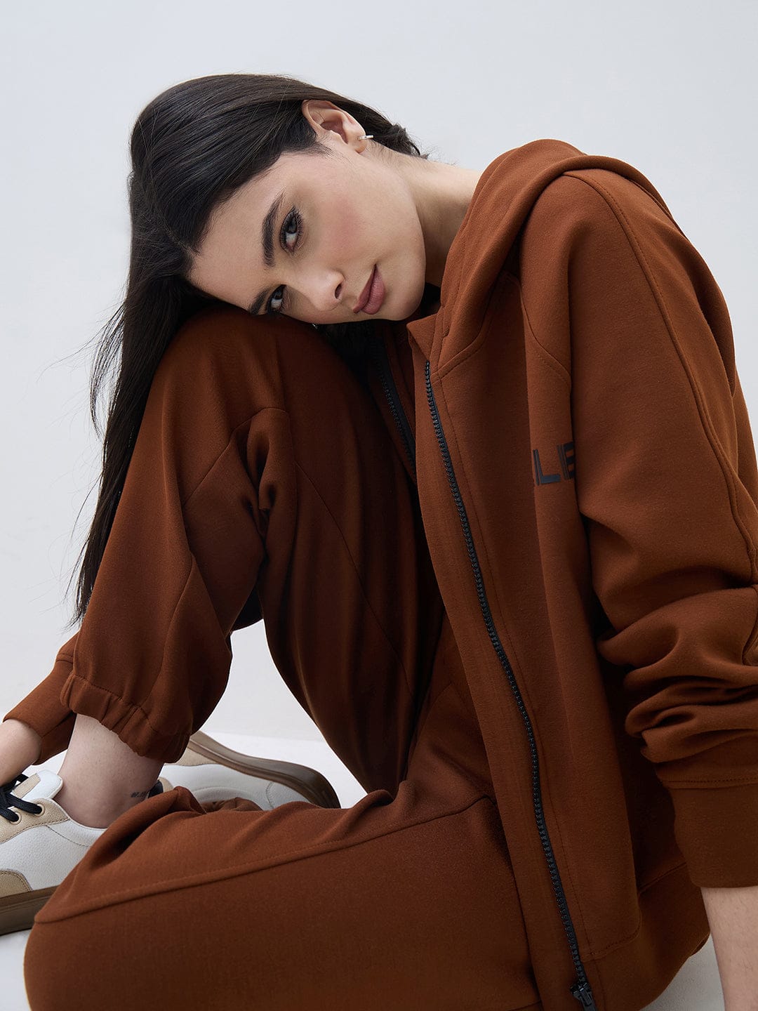 ELLE Women Brown Logo Hooded Regular Fit Sweatshirt