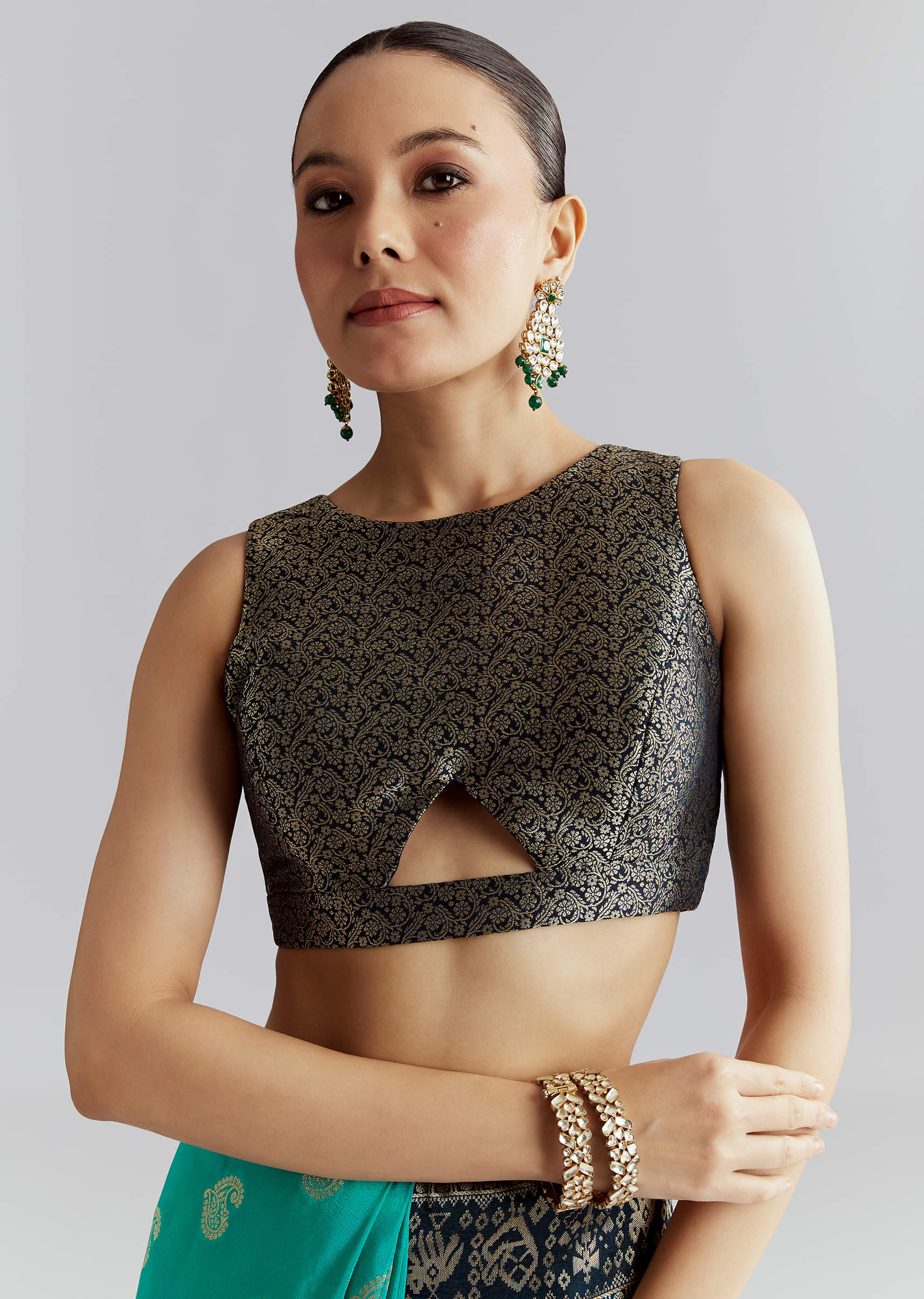 View compareBlue Banarasi Silk Woven Saree With Zari Paisley Motifs