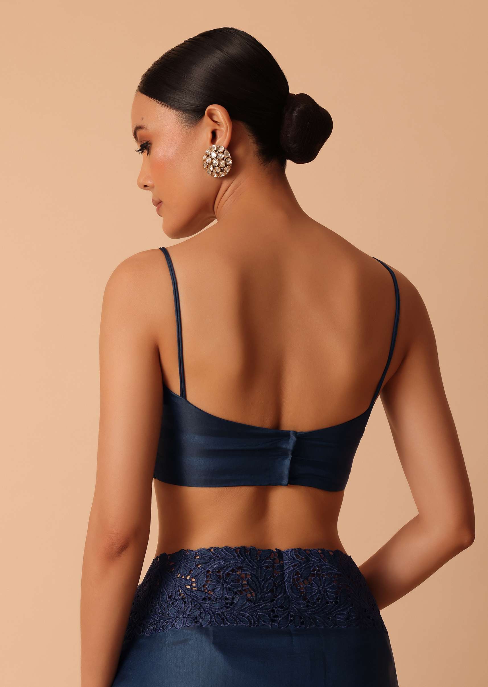 • Perfect for stylish festive nights and special events, this solid saree comes decked in a striking navy blue color.