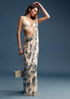 Cream Crepe Saree With Black Floral Print And Embroidery