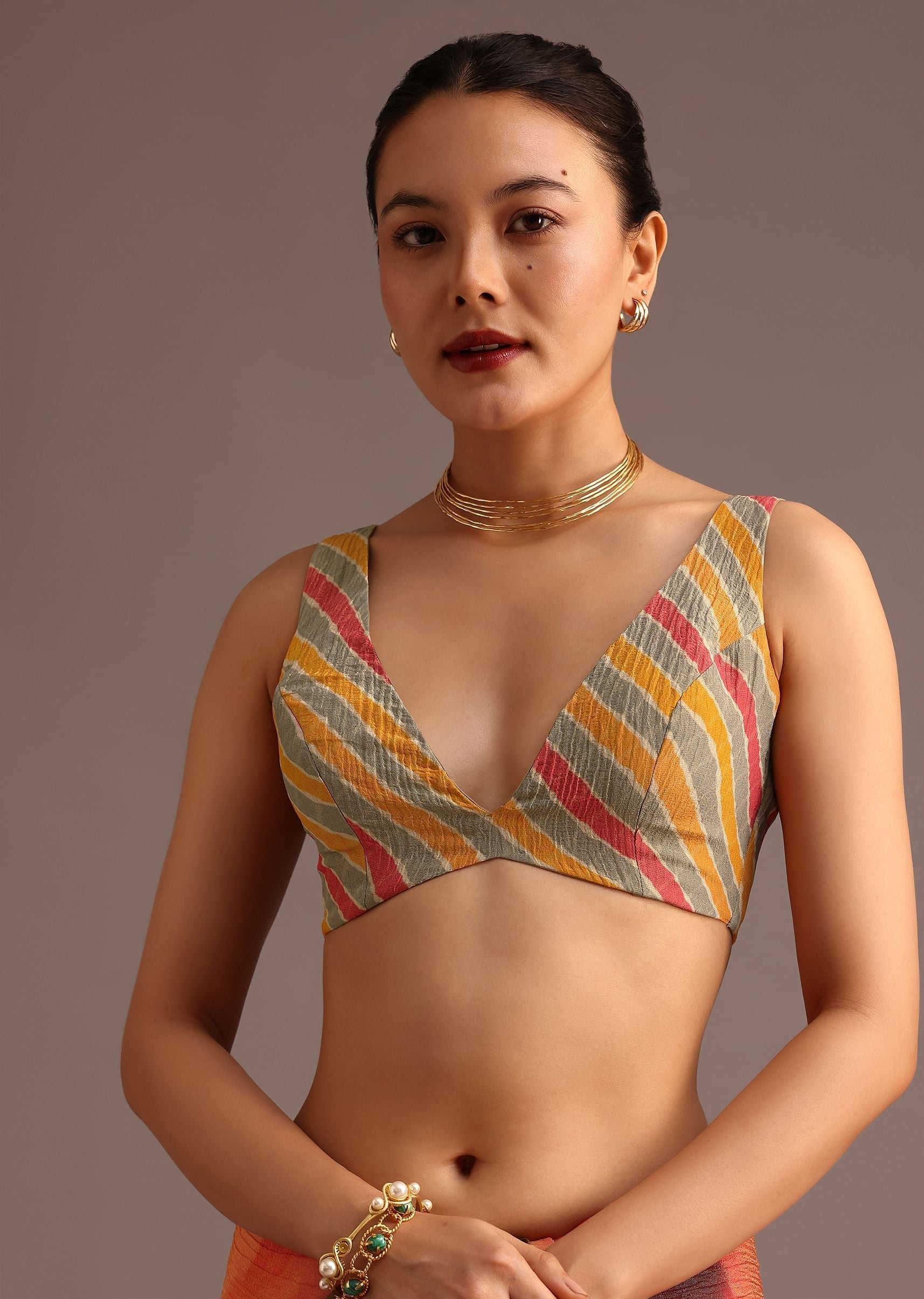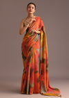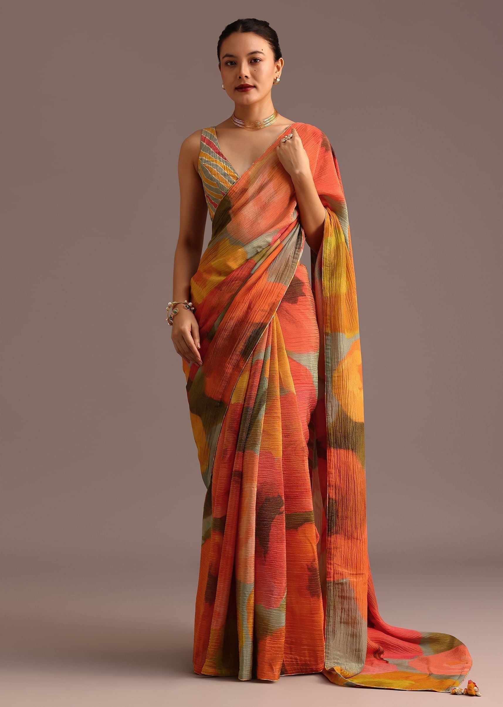 - Explore a world of vibrant elegance with the Orange Abstract Printed Crush Saree, a mesmerizing piece that exudes a sense of effortless luxury.